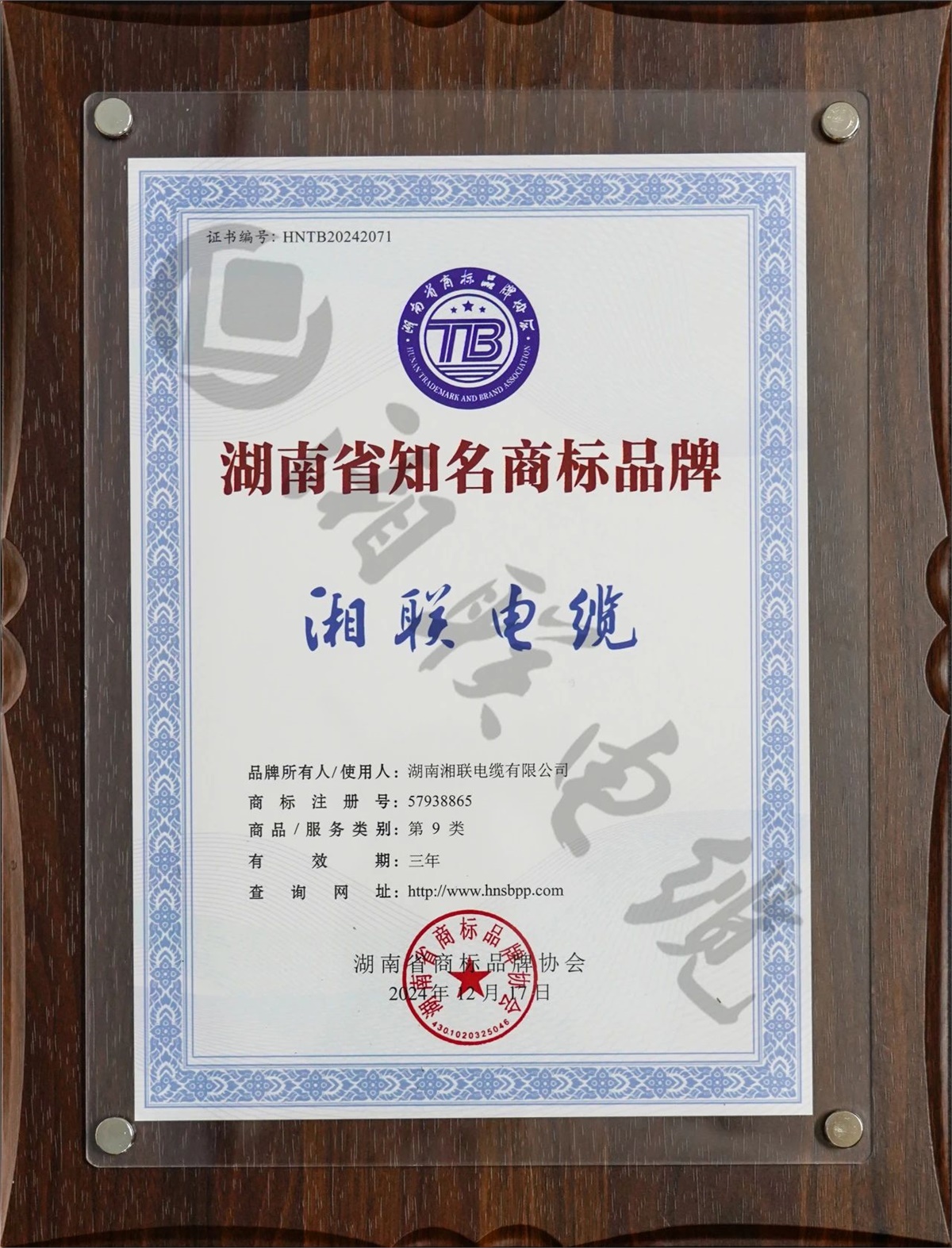 本屆年會以“誰為湖南贏得尊敬”為主題,旨在樹立行業(yè)標(biāo)桿,傳遞榜樣力量。會上,湘聯(lián)電纜獲評2024年第二批湖南省知名商標(biāo)品牌,一同入選的還有唐人神、旺旺食品等知名品牌。