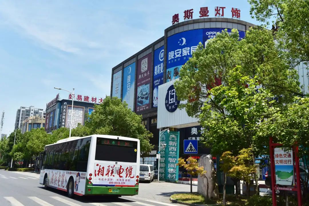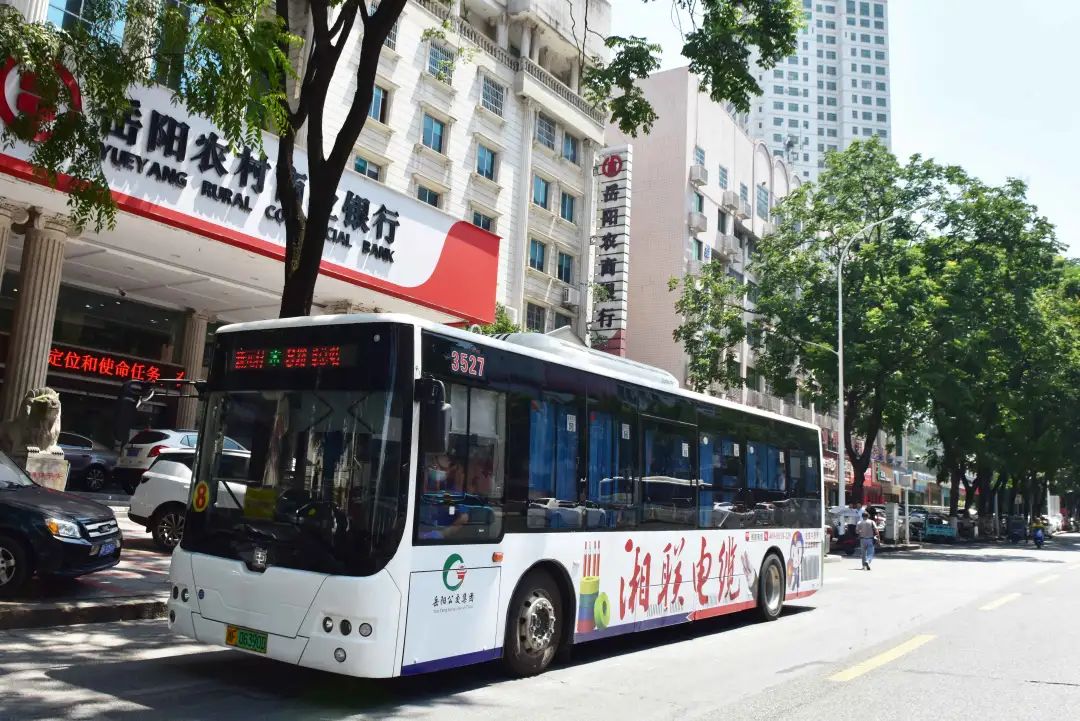身披湘聯電纜廣告的公交車穿梭于
