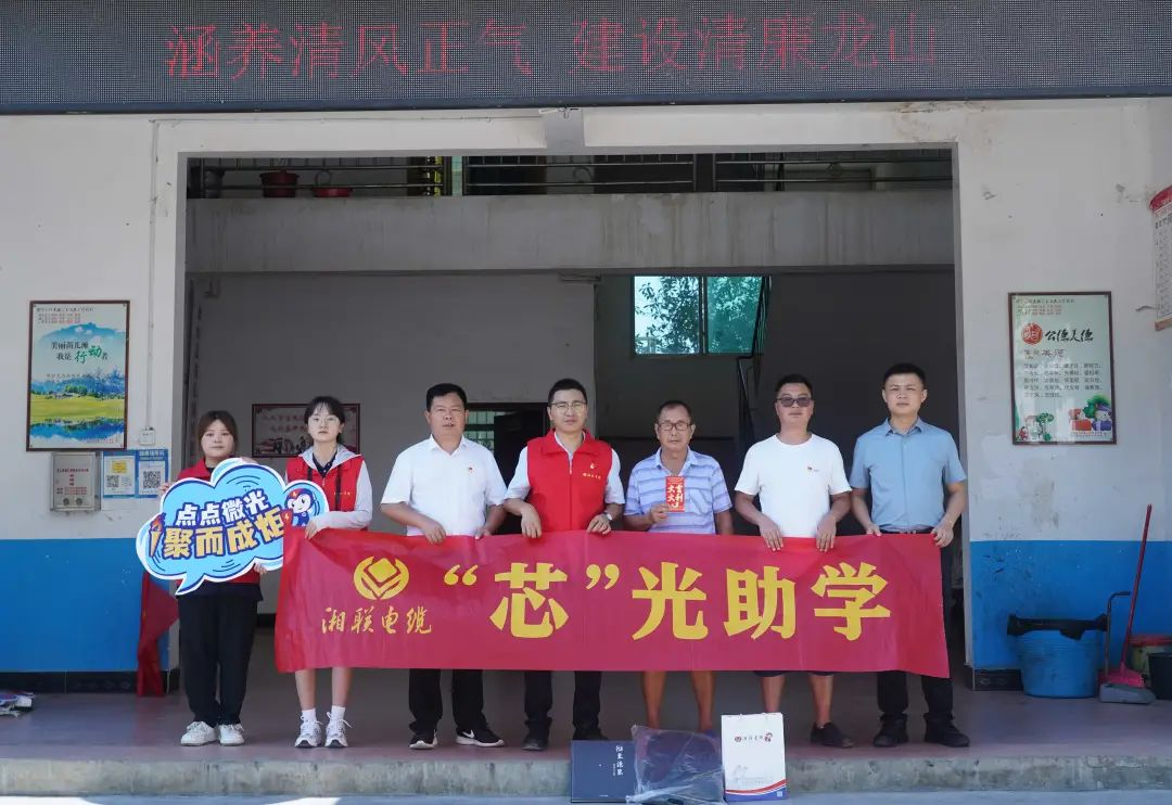 ▲湘聯(lián)電纜“芯”光助學(xué)基金會為孩子們送上愛心基金和學(xué)習(xí)用品