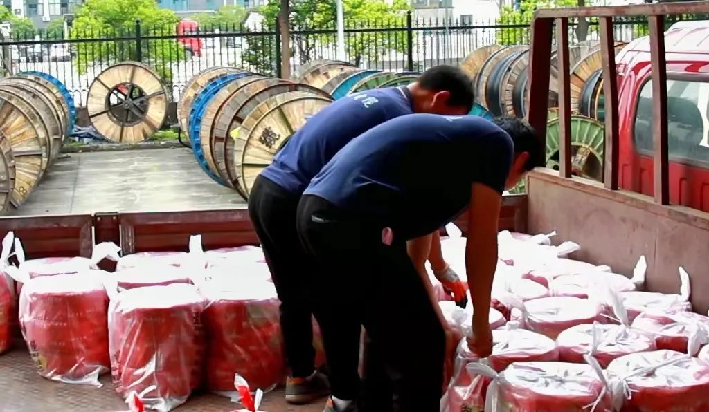 ▲徐應(yīng)南和同事正在搬運(yùn)電線