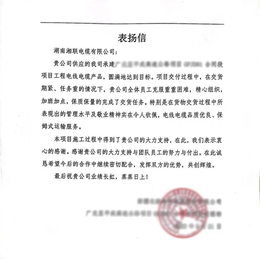 2022年5月20日,湖南湘聯電纜有限公司順利通過國家電網公司30KV及以下電纜"供應商資質能力"核實,這表明湘聯電纜具備國家電網集中規模采購的資格,公司在行業內的影響力和認可度進一步提升。