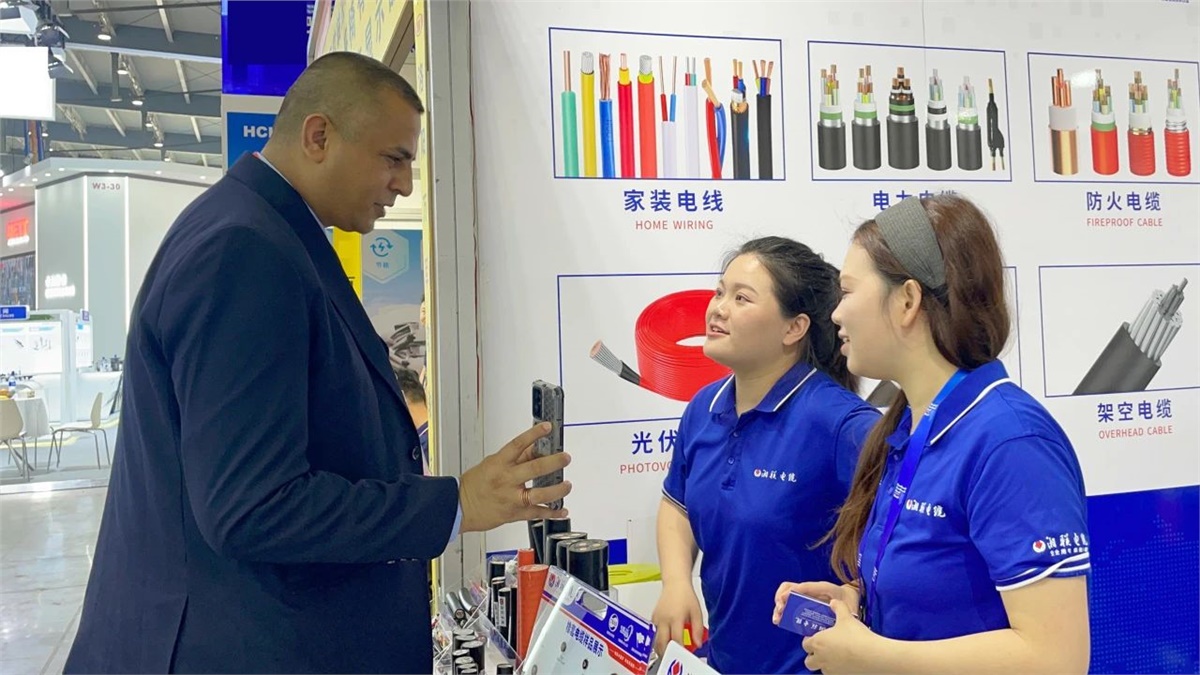 在展會現場,湘聯電纜圍繞光伏發電、新能源汽車、重型裝備等發展應用場景,與國內外參展觀眾就電線電纜的解決方案展開深入溝通與交流,生動呈現了公司產品在建筑工程、能源、電力等領域的廣泛應用,贏得了廣泛關注。