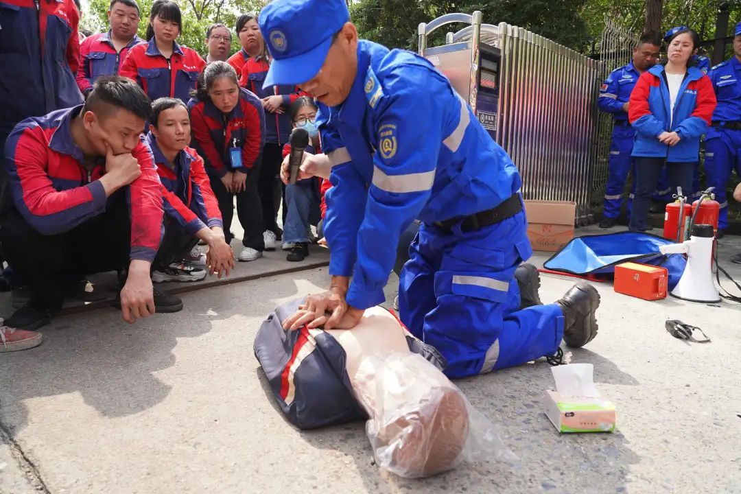 隨后,專業消防員以理論結合實際,現場講解了逃生注意事項、報火警通訊知識,并現場演示了滅火器、消防栓、水槍等消防器材的使用方法和心肺復蘇的操作方式,全面提升員工的消防技能。