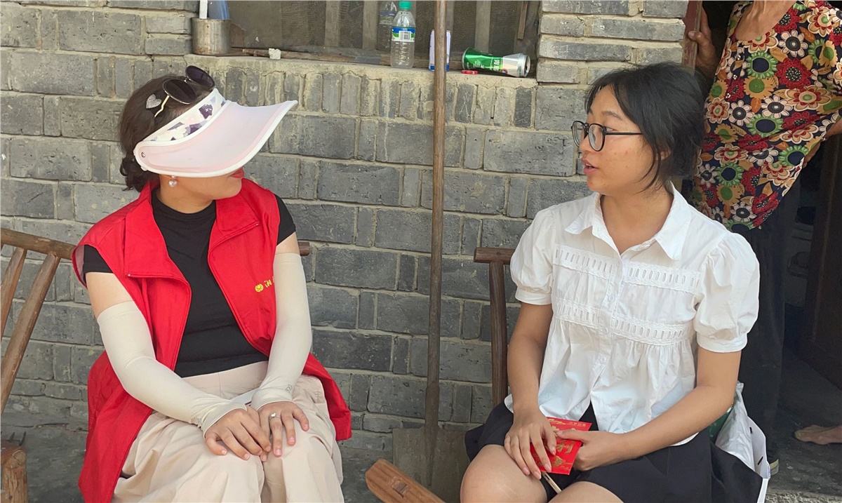 ★不懼高溫,志愿者們在當地干部的帶領下,步行趕往探訪學生家中