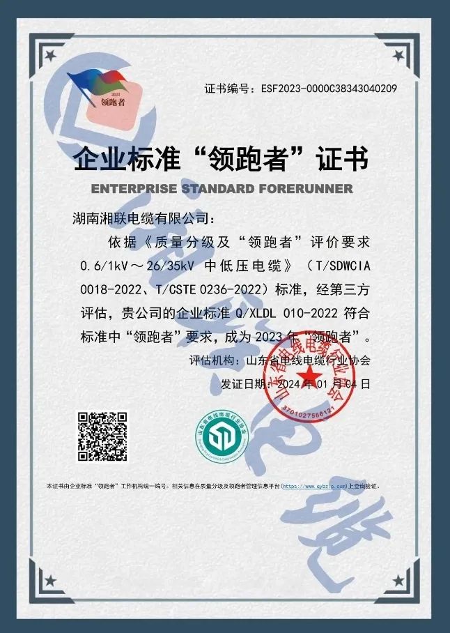 二月,企業(yè)標(biāo)準(zhǔn)領(lǐng)跑者管理信息平臺(tái)公布了2023年企業(yè)標(biāo)準(zhǔn)領(lǐng)跑者名單,湖南湘聯(lián)電纜有限公司憑借企業(yè)標(biāo)準(zhǔn)Q/XLDL 010-2022,成為2023年企業(yè)標(biāo)準(zhǔn)“領(lǐng)跑者”,湘聯(lián)電纜連續(xù)三年獲此殊榮。