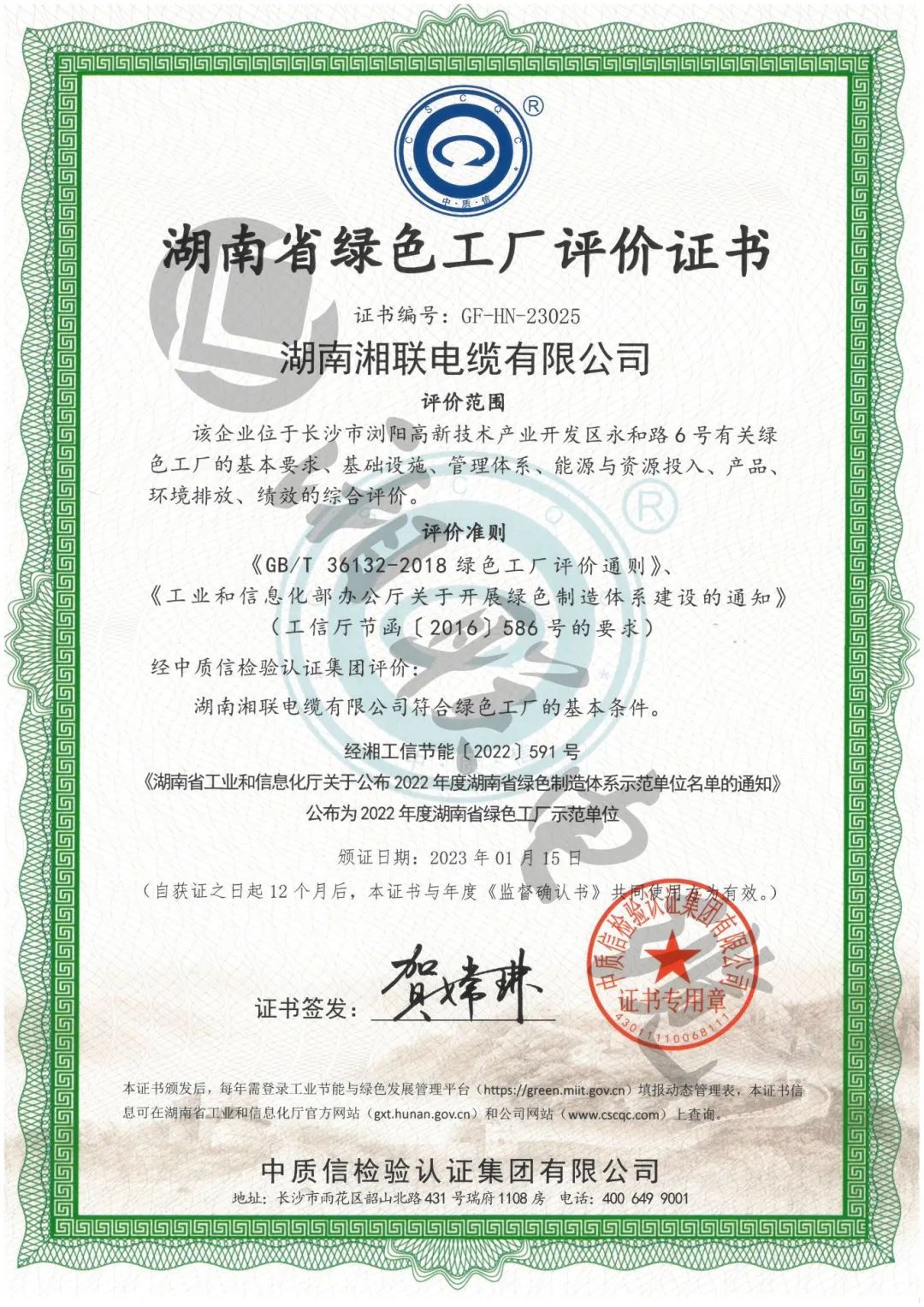 在這樣的時代背景下,湘聯(lián)電纜積極踐行“綠水青山就是金山銀山”的發(fā)展理念,協(xié)同推進減污、降碳、擴綠、增長,堅持生態(tài)優(yōu)先、節(jié)約集約、綠色低碳的發(fā)展道路,將綠色理念貫穿于全產(chǎn)業(yè)、全鏈條和全過程,并于2023年成功入選湖南省綠色工廠示范單位。